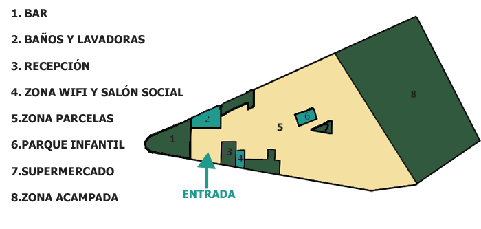 En el camping podrás encontrar; la recepción, el parque infantil...